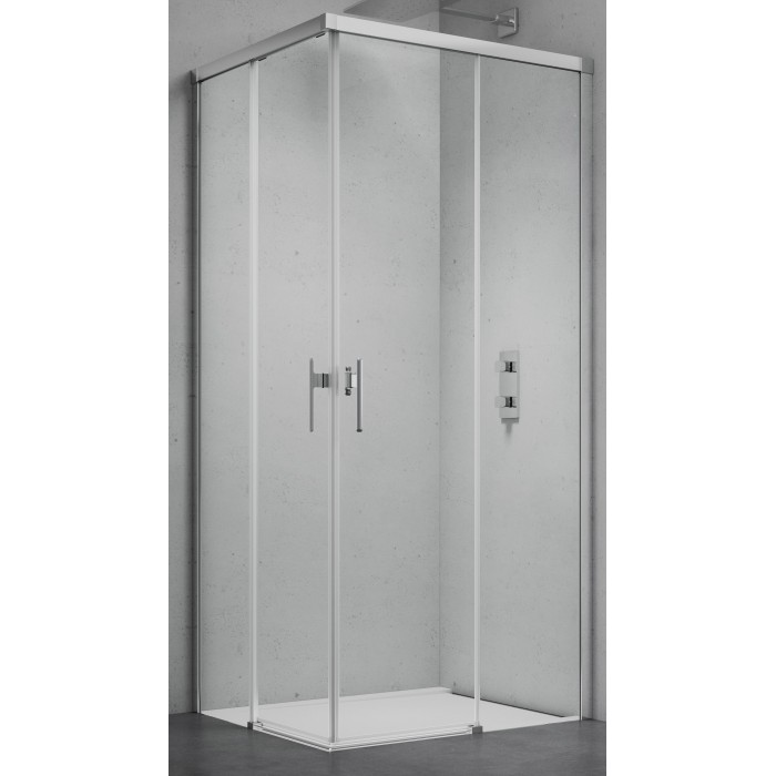 Keturkampė dušo kabina su kampinėmis stumdomomis durimis (be pado)