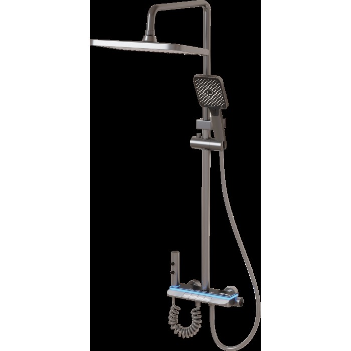 Dušo maišytuvas su skaitmeniniu temperatūros ekranu ir reguliuojamomis funkcijomis,