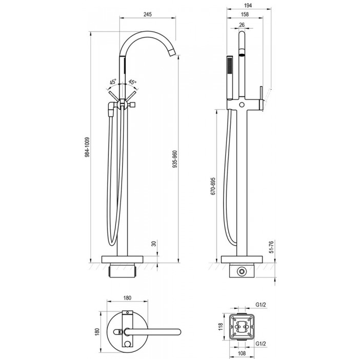 • Grindinis vonios maišytuvas Ravak Freedom, FM 082.20BL.RB07A, juoda