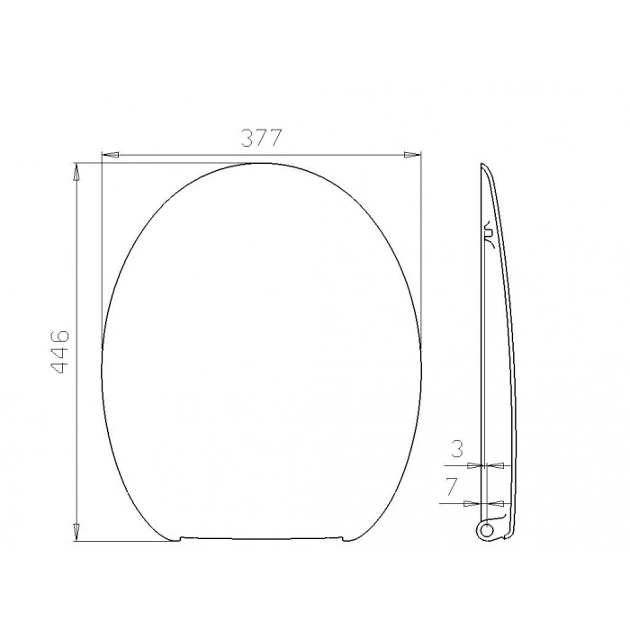 Matmenys: plotis 377 mm, ilgis 446 mm.