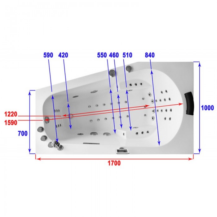 Masažinė Vonia AMUE-007A Kairė 170x100 cm.
