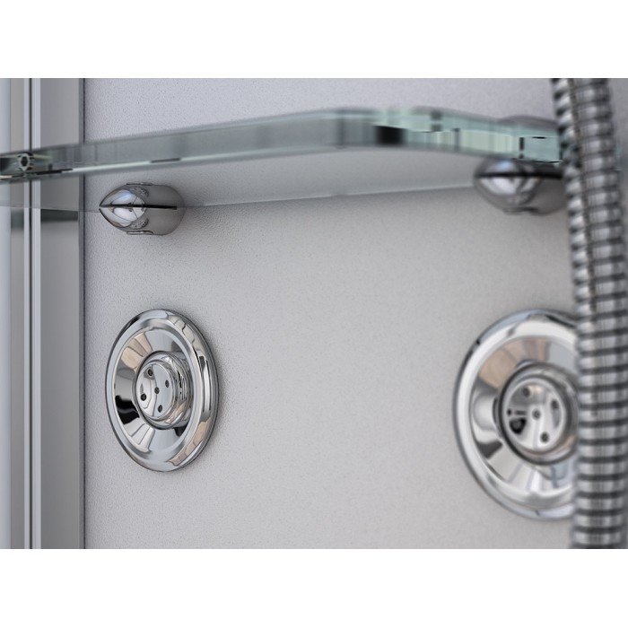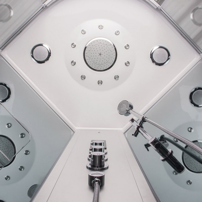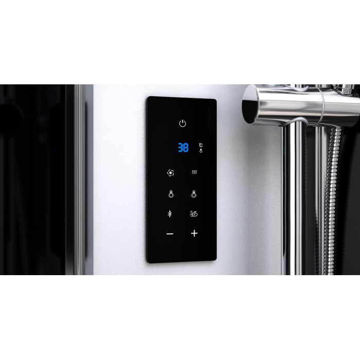 Aukščiausios kokybės Masažinė dušo kabina su garo pirtimi. Kabina sukonstruota taip, kad montuojama nenaudojant silikono. Akmens nasės padėklas ir stogas, storas 5 mm grūdintas saugus stiklas.