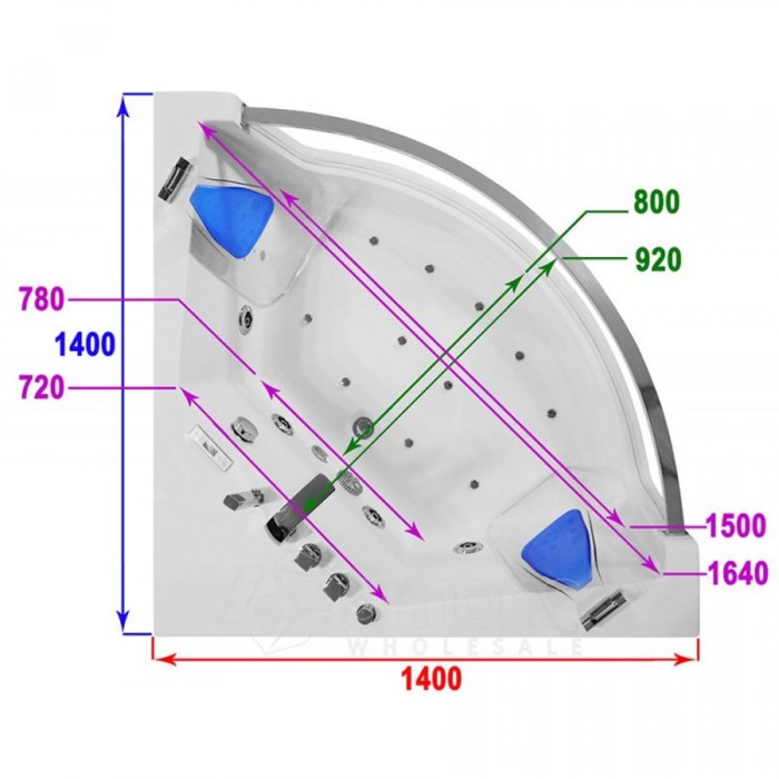 Masažinė vonia AMO-0053Bl Blue 140x140 cm.
