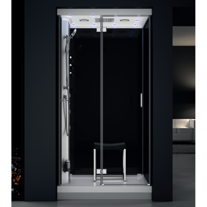 Aukščiausios kokybės Masažinė dušo kabina su garo pirtimi. Kabina sukonstruota taip, kad montuojama nenaudojant silikono. Akmens masės padėklas ir stogas, storas 5 mm grūdintas saugus stiklas.
