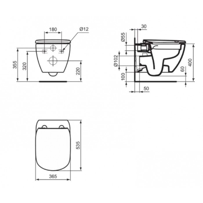 Pakabinamas WC puodas IDEAL STANDARD TESI, baltas blizgus