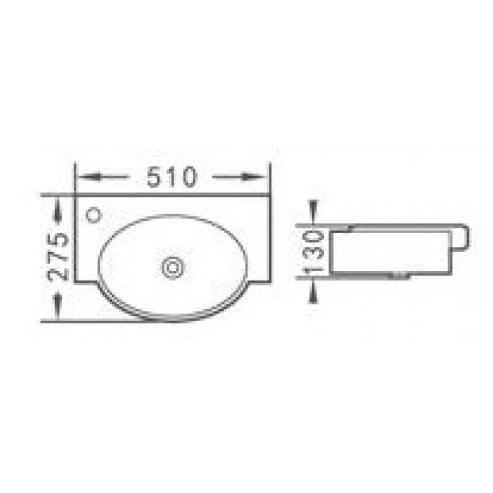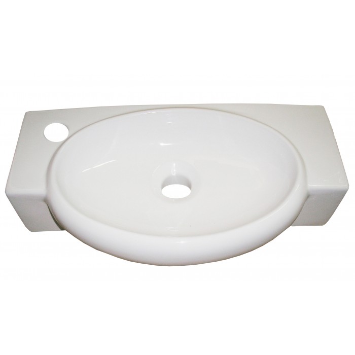 - Keramikinis pakabinamas praustuvas su skyle maišytuvui kairiajame kampe.