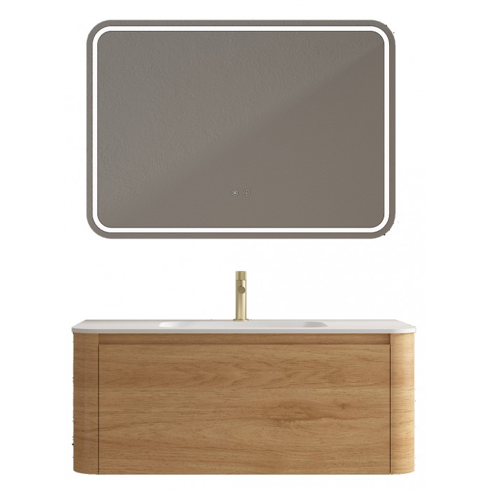 Pakabinama spintelė su keramikiniu praustuvu (LED veidrodžio komplekte nėra, įsigyjama atskirai).