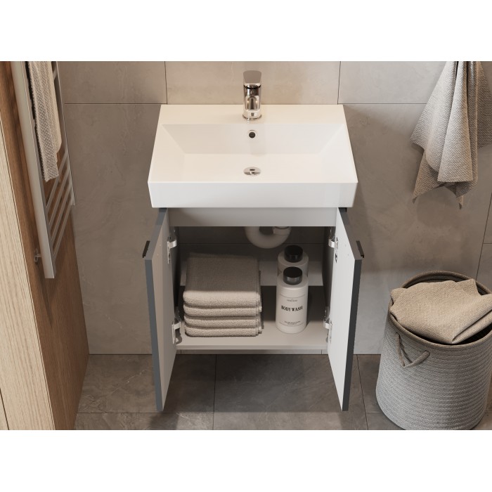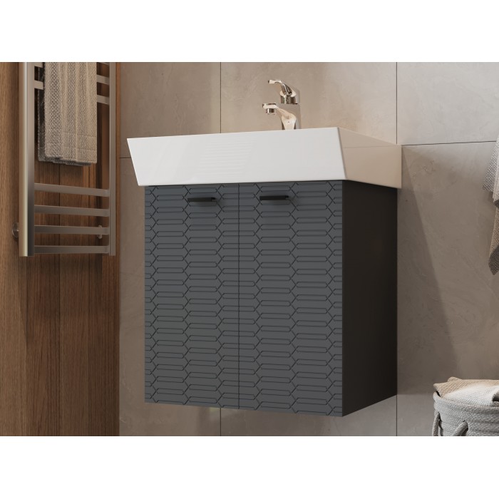 • Vonios kambario spintelė su praustuvu Piccolo PC-50 tamsiai pilka pakabinama